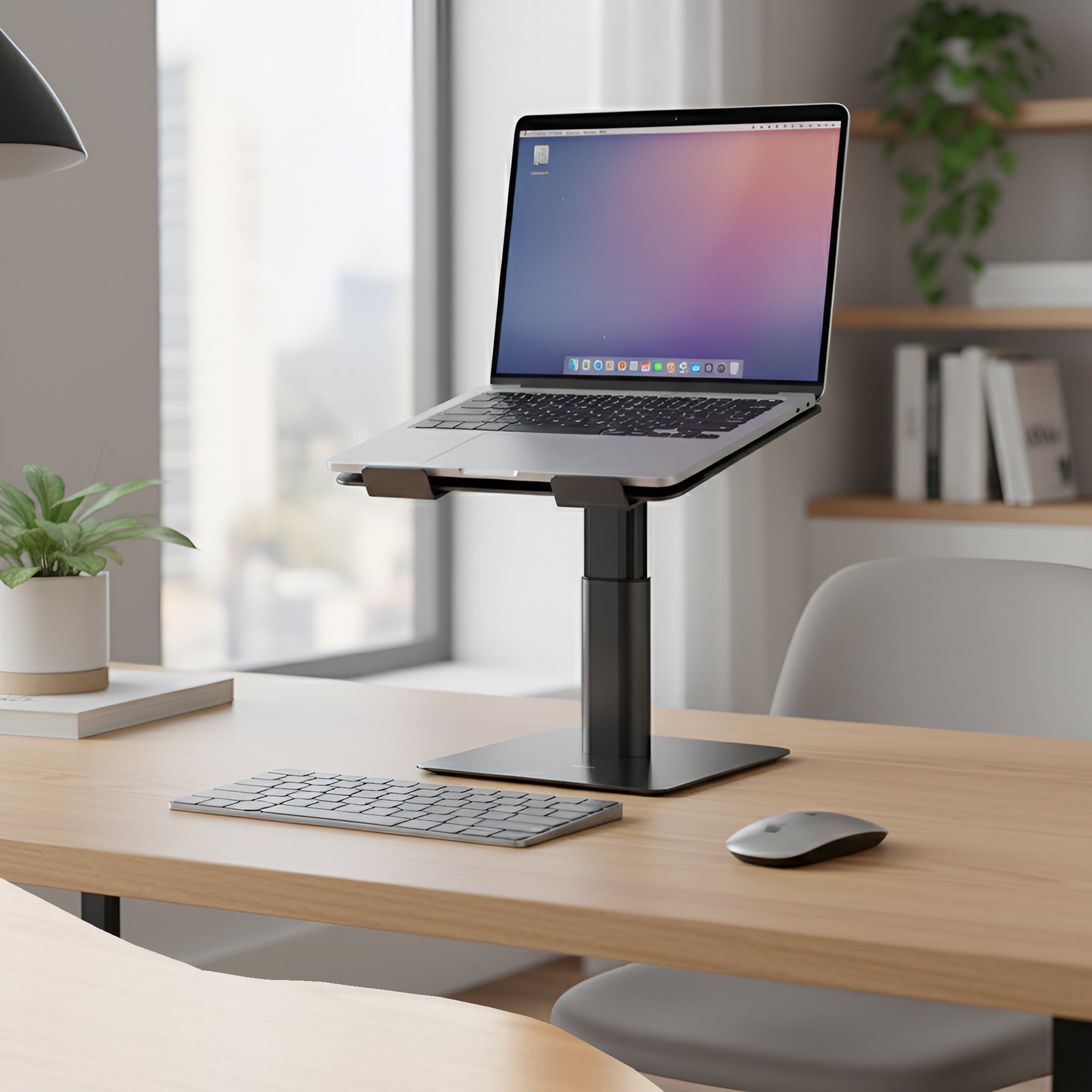 Raises your laptop up to 50cm to improve seated screen height and enable light standing sessions — creating posture flexibility without replacing your desk.